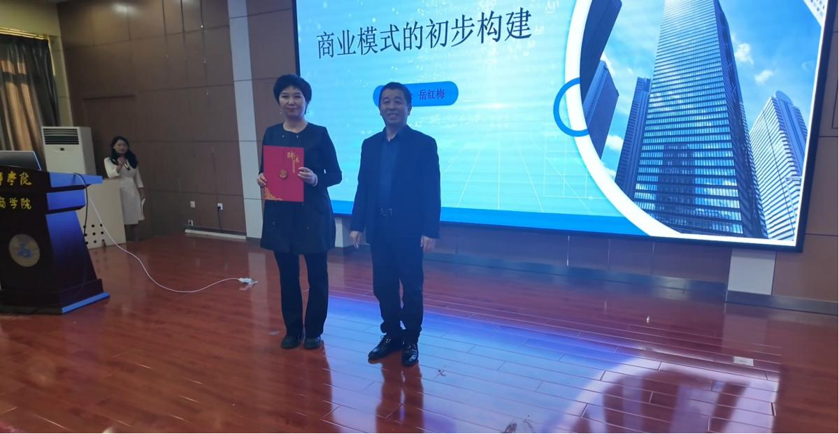 活动伊始,贾怀忠副院长首先为主讲嘉宾岳红梅颁发双创导师聘书。